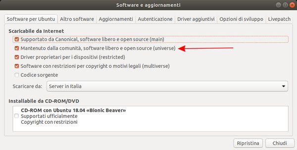 Accertati di aver abilitato il repository universe mettendo la spunta alla voce "Mantenuto dalla comunità, software libero e open source"